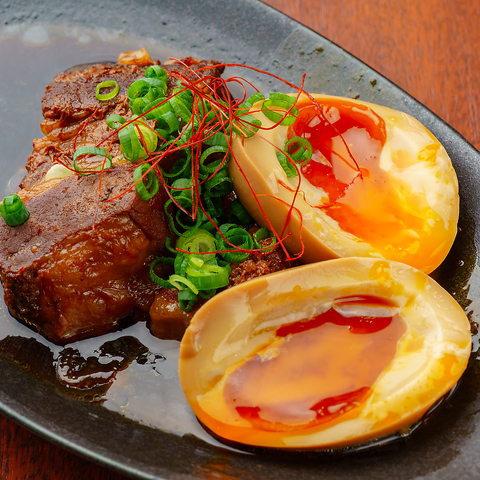 厳選した豚肉をじっくり煮込み、口の中でほろほろとほどける食感に仕上げました。旨みを凝縮した甘辛いタレがしみ込んだ至福の逸品です。