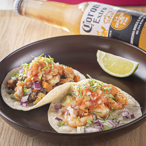 メキシコの太陽を感じる本格タコスはいかが?ジューシーなカルニタス(豚)のタコスや、ぷりぷりの海老とチポトレマヨが絡み合うタコスがオススメです。一口食べれば、あふれる旨みと香りが口いっぱいに広がり、気分はもうメキシコ!本場の味をご堪能あれ☆