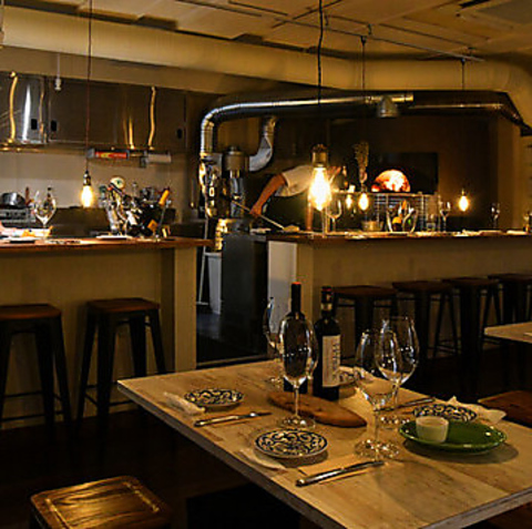 【オープンキッチンでライブ感あり】会社帰りのお洒落な飲み会にどうでしょうか?もちろんご家族連れの方も大歓迎です。また、デートやママ友会など多彩なシーンにお使いくださいませ。