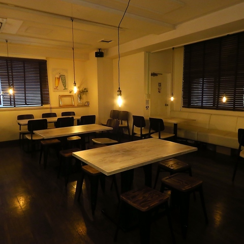 当店のテーブル席は、最大22名まで対応可能で、ママ友会や仕事帰りに最適。白を基調とした落ち着いた空間。