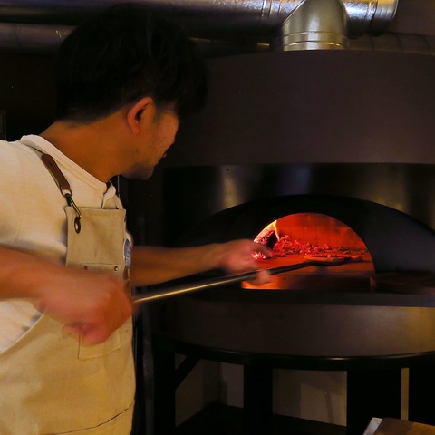 当店の自慢は、薪窯で焼き上げるモチモチのピザ。具材は、フィオラディラテ、トリュフ、粉チーズ、マッシュルーム!こだわりの薪窯を使用しております。また、他のお料理にもピザ窯の火を使っております。