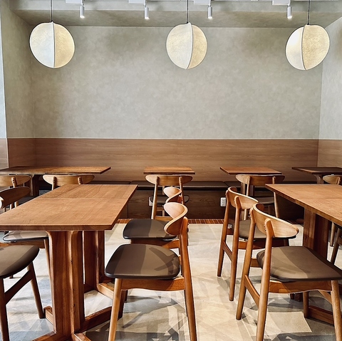 木の温もりと柔らかな照明に包まれた、心落ち着く空間◎昼は自然光が差し込む明るいカフェのような雰囲気、夜は照明の柔らかい灯りが映える大人の空間に!ひとりでも、仲間とでもくつろげる温もりあるダイニングです!