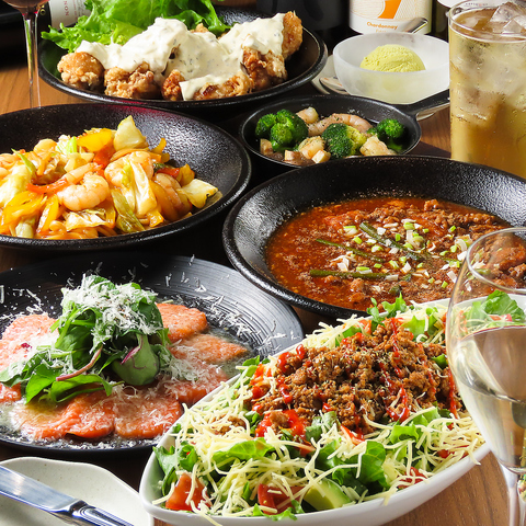 本格マーボー豆腐と、自家製タルタルが決め手のチキン南蛮を軸に、満足度の高い全7品を一度に堪能。プレミアムコースは“しっかり食べて、しっかり飲む”新宿の定番シーン(歓迎会・送別会・打ち上げ・同僚飲み)に最適です。2時間飲み放題付きで、幹事も安心の明朗会計。仕事終わりの一杯から大人数宴会まで、間違いなし☆