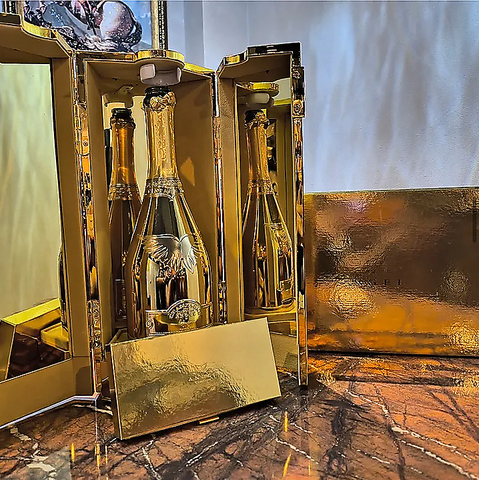 華やかな泡立ちとフルーティーな香りが楽しめるエンジェル プレミアムゴールドのシャンパン。口当たりは柔らかく飲みやすいので、乾杯や特別なひとときにぴったり。お祝いの席や友人との集まりでも贅沢な時間を演出するおすすめの一杯です。