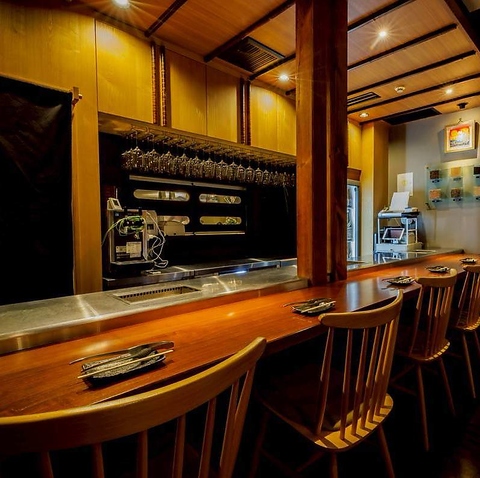 木の温もり溢れる落ち着いた空間で、職人が目の前で繰り広げる技や丁寧な仕上げを間近でご覧いただけるため、五感すべてで楽しめる特別な場所です。一人でも気軽にご利用いただけるカウンター席は、お仕事帰りや、デートにも最適。程よい照明が心地よい空間を演出し、リラックスしながら味わうお肉は格別の美味しさです。