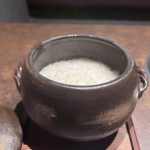 焼肉に合うお米を、当店の五つ星マイスターがセレクト!釜を使って手間暇かけることで、甘みを引き出しながら美味しく炊き上げます。光り輝く焼きたてのご飯は、もっちりとしてほのかに甘く、まさに至福の味わいで。もちろんお肉との相性はバツグンです♪