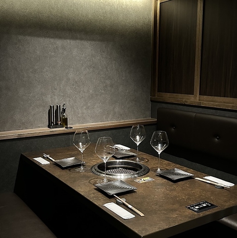 【落ち着いた高級感のある雰囲気は特別なシーンでのご利用にもピッタリ】黒が基調の大人びたシックな空間では、日常の喧騒を忘れられるワンランク上のひと時をお過ごしいただけます。五感全てでお食事をお楽しみください。