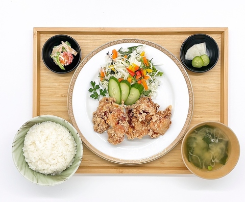 外はカリッと、中はジューシーに仕上げた鶏の唐揚げを主役にした定食!