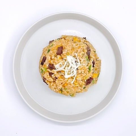梶屋牛の自家製チャーシューがごろっと入ったチャーハン。ぱらぱらに仕上げました。/ハーフ580円(税込)チャーハン大盛り1280円(税込)