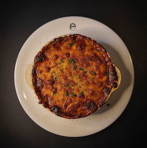 蝦夷鹿のラグーに赤ワインとハーブをきかせ、マッシュポテトと重ねて焼いた一品。立ち上がる香りだけで、ワインが欲しくなるビストロ料理です。こちらも12月限定メニューになります。