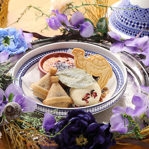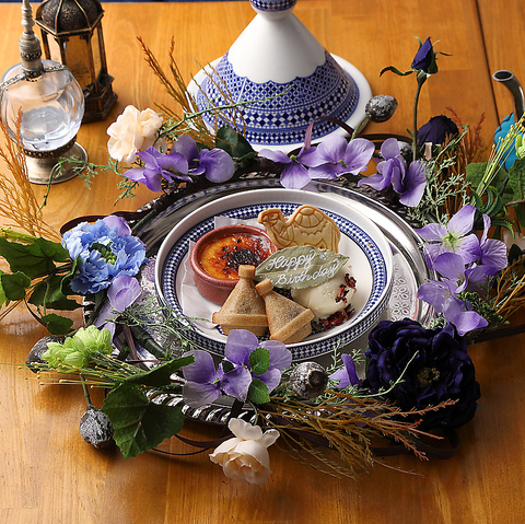 *パティシエオリジナルプレート*誕生日や記念日には、モロッコ風のお皿にかわいく盛りつけた特製お祝いプレートをご用意。写真映えも抜群で、たまプラーザの女子会やデートにも人気です。サプライズ演出もお気軽にご相談ください。
