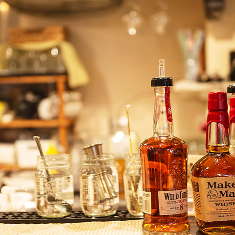 カクテル用シェーカー&リキュール各種 本格的なカクテル作りに対応するため、シェーカーや豊富なリキュールを常備。女子会や飲み放題コース利用時にも幅広いリクエストに応えられます。
