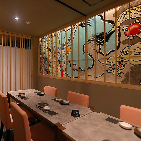 シックで落ち着いた内装が、和のエレガンスを感じさせます。高級感あふれる空間で、特別な料理を楽しむことができ、心が静まるひとときを提供します。大人のための特別な和体験をお楽しみください。