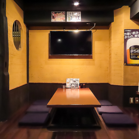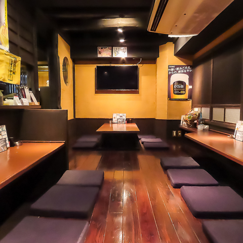 人形町駅すぐの隠れ家空間。全席掘りごたつの落ち着いた雰囲気で、焼き鳥と日本酒をゆったり楽しめます