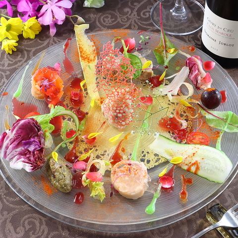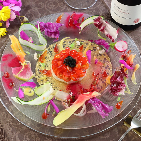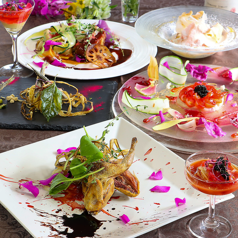 創作イタリア料理がランチやディナーで楽しめるコース料理をご用意しています。ディナーコースには、高級食材を贅沢に使用したコースもご用意しており、シェフの技が光る一皿をお楽しみいただけます。季節ごとの素材を活かし、見た目にも美しい料理を提供し、特別なひとときを演出しており、心を込めた料理をお届けいたします。