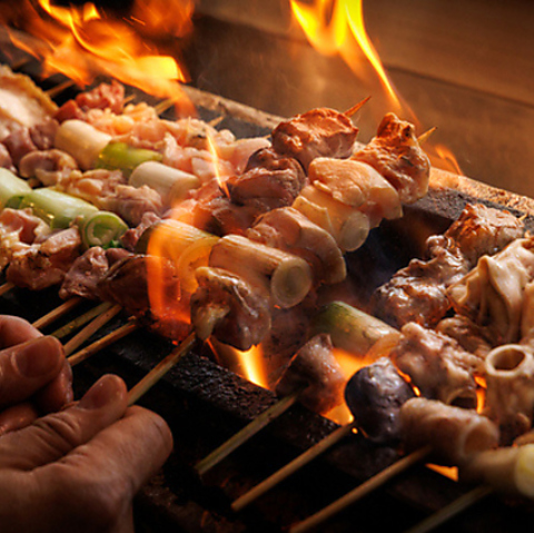 炭火で仕上げるジューシーな地鶏焼き鳥!