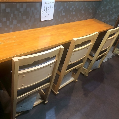 店内には、4名掛けのテーブル席を2卓ご用意しております。背もたれ付きの椅子で、ゆったりとくつろげる造りとなっており、ご友人同士のお食事やご家族でのご利用にも最適です。落ち着いた和の空間のなかで、気兼ねなく会話を楽しみながら、新鮮な海の幸とお酒をゆっくりとご堪能いただけます。