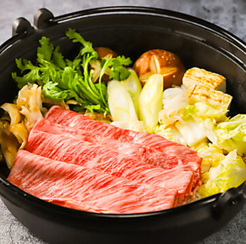 特製の割り下で煮込む最上級A5和牛を使った贅沢なコースが登場!食前酒の梅酒で始まり、本格すき焼きが口の中でとろける至福の瞬間をお楽しみいただけます♪お肉の旨味を最大限に引き出した逸品は、まさに至福の味わいです♪美味しい料理と上質な空間で、心ゆくまで素敵な時間をお過ごしくださいませ!