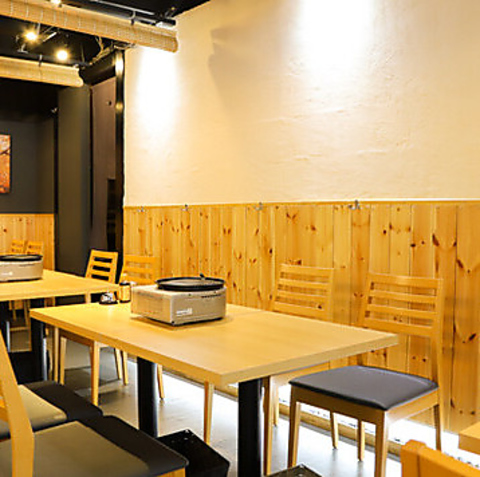 店内は白と木目を基調とした、明るく清潔感のある落ち着いた空間です。ゆったりと座れるテーブル席は広々としており、お食事をしながら会話を楽しみたい方におすすめ♪4名掛けテーブル席を5卓ご用意しておりますので、ご友人やご家族とのお食事にぴったりです◎美味しい料理を囲んで、素敵な時間をお過ごしください。