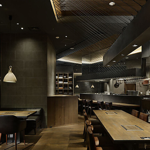 家族でのディナーや会社宴会に人気の落ち着いたテーブル席は、ゆったりとした空間で会話も弾む心地よいひとときを演出いたします。また、カウンター席もご用意しております。こちらは女子会やデートに好評のお席で、目の前で焼き師の技を楽しめるライブ感が魅力です。他にもテラス席もご用意しております。