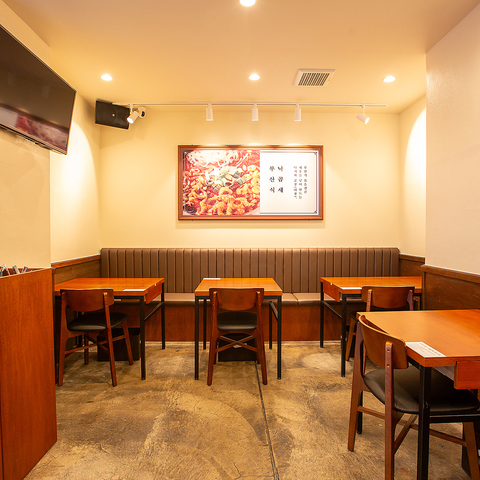 木の質感が心地よい店内は、モダンな照明と韓国らしい空気感が調和した癒しの空間。ゆったり座れるソファー席で、本場の味を楽しみながら、友人やご家族、デートなど、特別な時間を過ごせます。