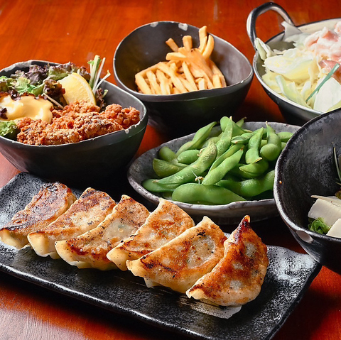 太田市で人気の餃子専門店「爆じゅう餃子 GYO-TEN」の餃子を仕入れ、提供。その名の通り、皮の中には肉汁がたっぷり!一口食べるごとにじゅわっと溢れるジューシーな餃子をお楽しみ下さい。爆じゅう餃子の他に、新鮮な青しそがたっぷり入った『しそ餃子』、丸ごと1尾入った贅沢な『えび餃子』もご用意しています。