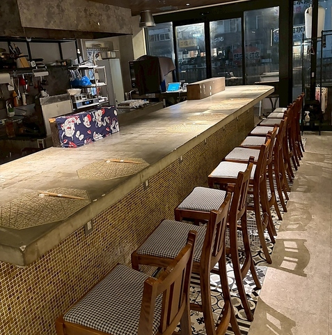 目の前で調理する職人の技を眺めながら、出来立ての美味しい料理を堪能できる、特等席です。