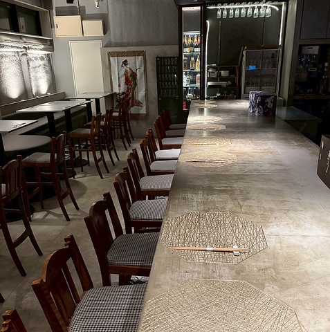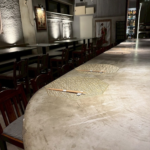 お二人でのご利用に最適な、広々としたカウンター席をご用意しています。洗練された落ち着いた雰囲気は、大切な人との記念日や、ビジネスでの接待にもぴったり。美味しいお料理とお酒を心ゆくまでお楽しみいただけます。