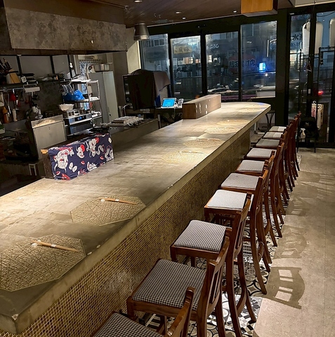 洗練された落ち着いた雰囲気の店内には、こだわりの広々としたカウンター席をご用意しています。デートや接待といった特別なシーンに最適です。目の前で調理する職人の技を眺めながら、ゆったりと流れる時間をお楽しみください。