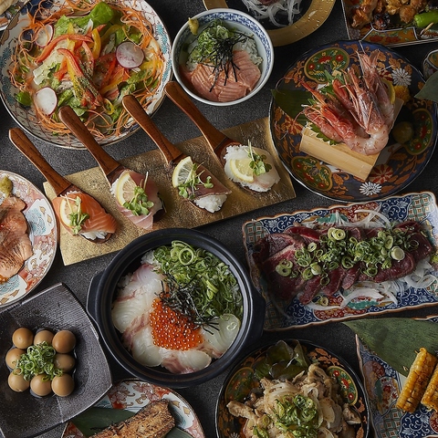 当店では様々な創作和食を取り揃えております。クーポン利用でお得に♪新鮮なお造り・その他厳選された食材を使用した料理の数々をご堪能ください。飲み放題付き宴会コースも2800円(税込)~ご用意しております。【広島駅 居酒屋 焼き鳥 飲み放題 誕生日 海鮮 馬刺 個室 広島 送別会 歓迎会】