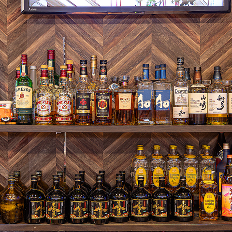 麦・芋焼酎やウイスキーのボトルキープ(5,000円~)をはじめ、ジン・ウォッカ・テキーラなどの本格カクテル、チューハイ、梅酒、日本酒、グラスワイン、ソフトドリンクまで気軽に楽しめます。さらに、特別な夜にはボトルワインやシャンパン(各3,000円~)瓶ビール(1,000円)などの別料金ドリンクも用意◎各種税込500円~