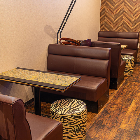 4名掛けのテーブル席が2卓配置された店内は、友人同士の飲み会やちょっとした集まりにぴったり。程よい距離感と落ち着いた照明が、会話を弾ませるリラックス空間を演出します。カラオケを楽しみながら、気の合う仲間とまったりと過ごせるのが魅力です。