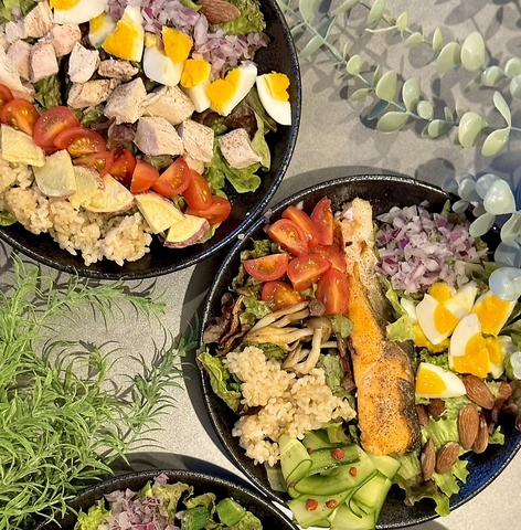 tete's kitchenのサラダボウルはどれもボリューム満点!セットでクロッフルも付けられます◎