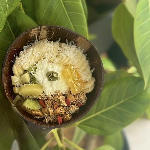 コムハニーがトッピングされたはちみつたっぷりグリークヨーグルト