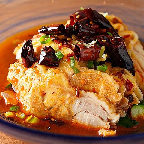 鶏肉のしっとり柔らかな食感が特徴の『旨辛よだれ鶏』は四川山椒、ごま油、自家製ラー油などを混ぜた秘伝の特製だれが特徴。香ばしい香りが、鶏肉の旨みを一層引き立てます。お好きなお酒とご一緒にご堪能ください♪