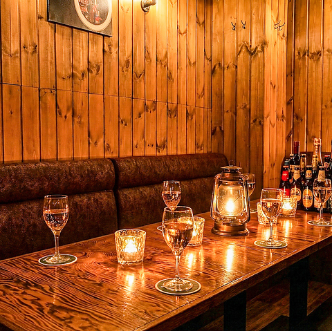 店内は人数やシーンに合わせて自由に使えるレイアウトが魅力。少人数でのカジュアルな飲み会から、20名規模の貸切パーティーまで幅広く対応可能です。木の温もりを感じるインテリアと、落ち着いた照明が織りなす温かい雰囲気は、どんなシーンにもマッチ。
