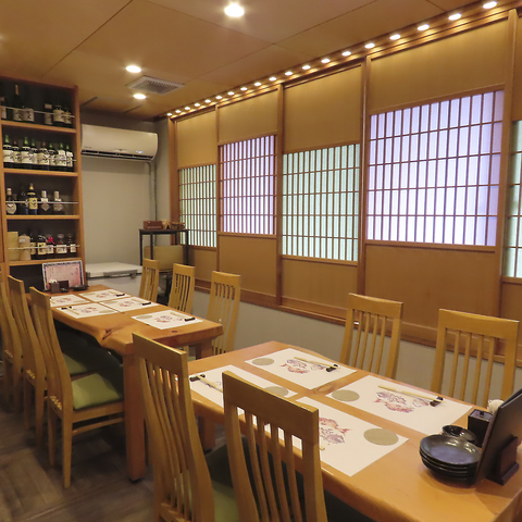 小宴会にもご利用いただけるテーブル席。最大10名様までゆったりとお過ごしいただけます。会社宴会、女子会、打ち上げなどシーンに合わせてご利用ください。また貸切もご相談いただければ承れますのでお気軽にご相談ください。