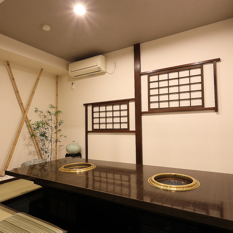 高級感のある落ち着いた空間に、ゆったりとしたテーブル席をご用意しております。プライベートなお食事から、グループでの飲み会など、様々なシーンでご利用いただけます。上質な焼肉を、落ち着いた雰囲気の中でゆっくりとお楽しみください。