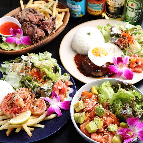 ガーリックシュリンプやポキボウルなど、本格料理を多数ご用意。自家製ソースや厳選素材で南国気分を満喫☆