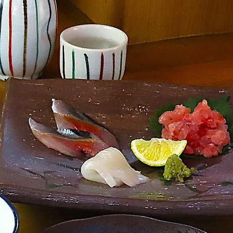 店主自ら豊洲で仕入れた魚介類は、食材の鮮度と味わいが格別です。刺身盛り合わせやなめろう、あじ竜田揚げなど、その日の旬の食材を使用した料理を取り揃えております。豊かな海の恵みを存分に味わう、特別なひとときをお楽しみください。