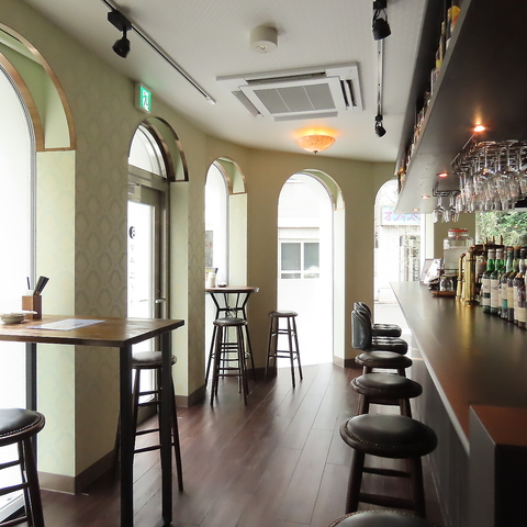 テーブル席は、4名席が2つと2名席が1つ、さらにテラス席にはスタンディング用のテーブルが2つ!広々とした空間で、リラックスしながらお食事を楽しめます。みんなでワイワイするのにぴったりです。