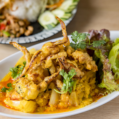 【カレーと卵でふんわり優しい味♪】~ソフトシェルクラブのカレーパウダー炒め~⇒☆1,480円(税込)☆