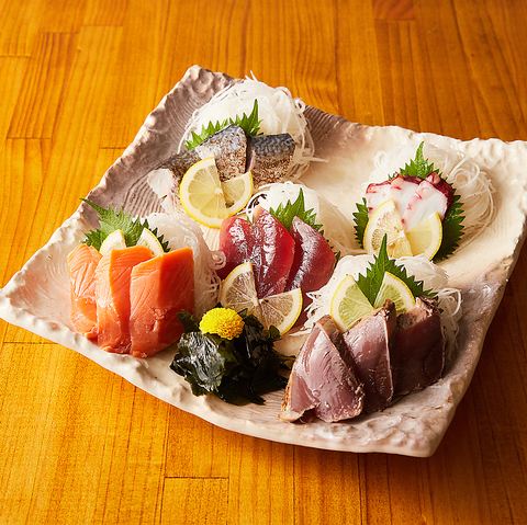 5種類の鮮魚を楽しめる豪華な盛り合わせ。一口ごとに異なる味わいが広がり、贅沢な時間を演出します。