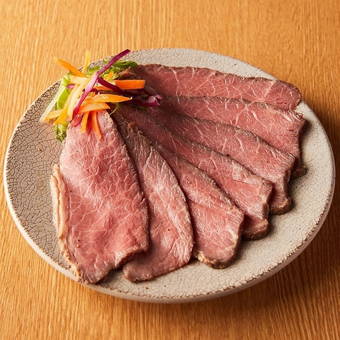 低温でじっくりと調理し、しっとりと仕上げたローストビーフ。肉の旨味を存分に堪能できる贅沢な一皿。