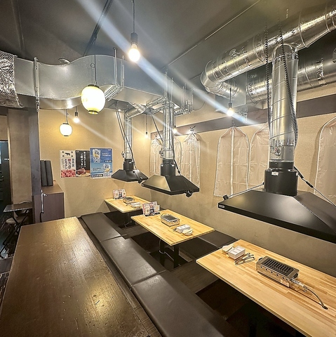 全席に排煙設備が完備されています◎『大衆ホルモンやきにく』といっても、木目調で落ち着いた雰囲気!清潔感のある空間なので、女性同士てもぜひご利用いただきたい空間です♪一度行ったら、病み付きになるお店です!