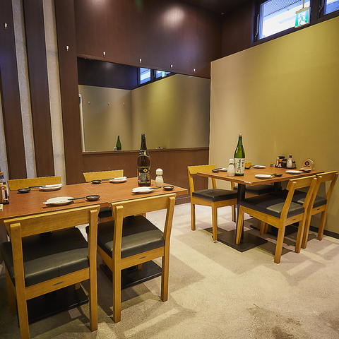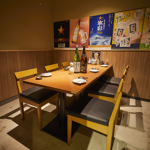 周りを気にせずご利用いただけるテーブルタイプの個室です♪ゆったりと落ち着いた雰囲気を演出。グループでのにぎやかな利用から、お一人様のしっとり晩酌まで、どんな方にも心地よくお過ごしいただけるよう配慮しています。