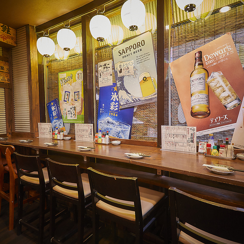 生牡蠣が1個99円で楽しめる大衆酒場!広々とした店内には座席やカウンター席を完備し、夜景も楽しめる特等席もございます。充実した日本酒、焼酎、ワイン、カクテルと共に、贅沢なひとときをお過ごしください。