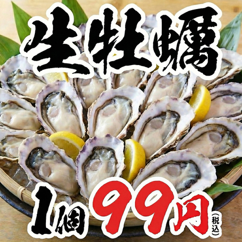 殻付きの新鮮生牡蠣が原価越えのスペシャルプライスでなんと一個99円!焼き・蒸し・揚げ・創作まで牡蠣をとことん味わえる!食べ放題プランや日本酒飲み比べ、選べる〆料理まで、牡蠣の魅力を余すことなく楽しめる名物居酒屋です。おでんや蕎麦などの逸品も豊富で、牡蠣初心者から通まで満足いただける充実メニューです。