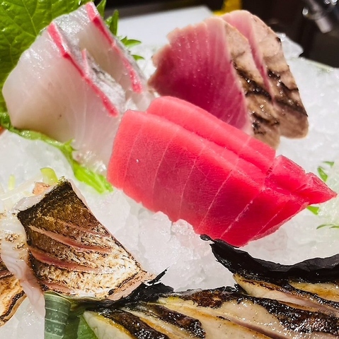 魚屋さんありがとう~!と叫びたくなるほど新鮮な旬魚を厳選した、自慢の刺身三点盛り。素材本来の旨味を最大限に引き出し、繊細な味わいをお楽しみいただけます。お好みのお酒と合わせてご賞味ください◎