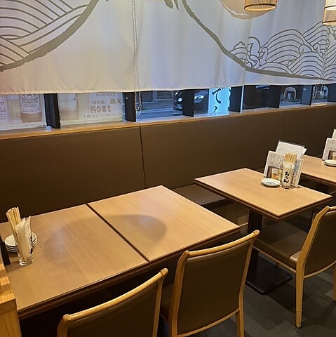 4名様用のテーブル席は、広々とした空間でゆったりとお食事を楽しめます。ご家族やご友人と、賑やかなランチに最適です。